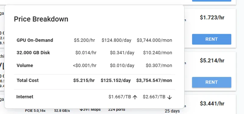 5. Select a GPU and click Rent button.
