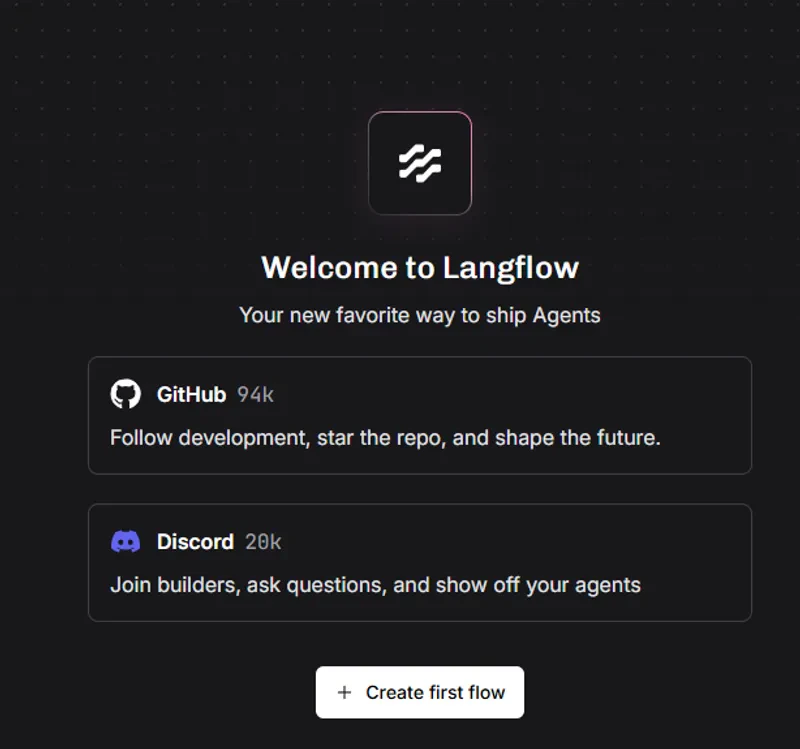 After opening Langflow, click the ‘Create first flow’ button.